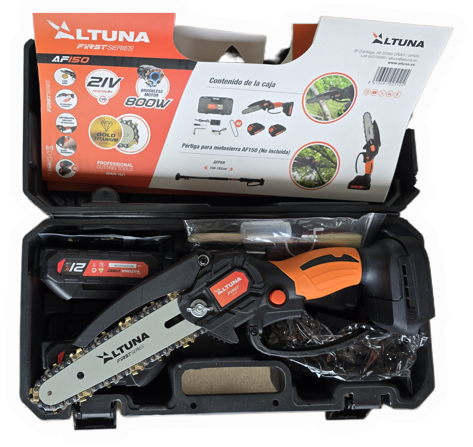 Motosserra Altuna AF150 (Brushless Motor 800W) 2 Baterias 21V 2Ah 150 mm